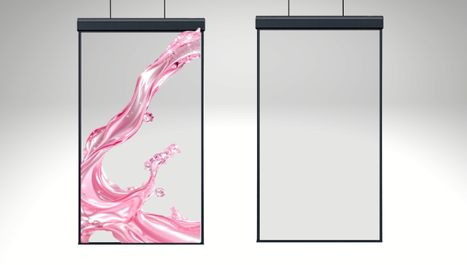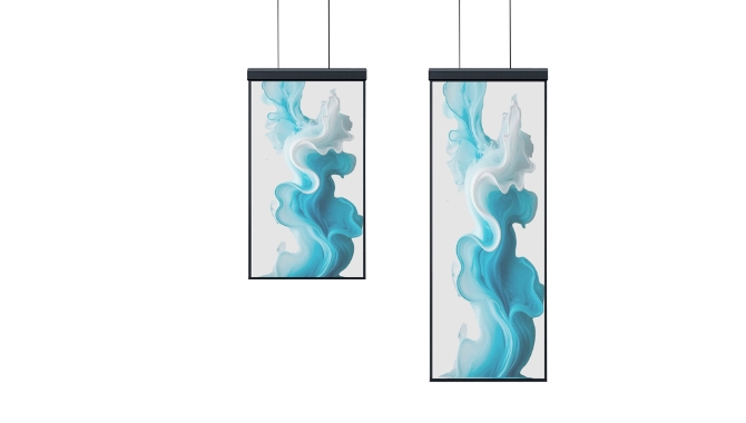 Suspended transparent displays designed for commercial environments and architectural integration.