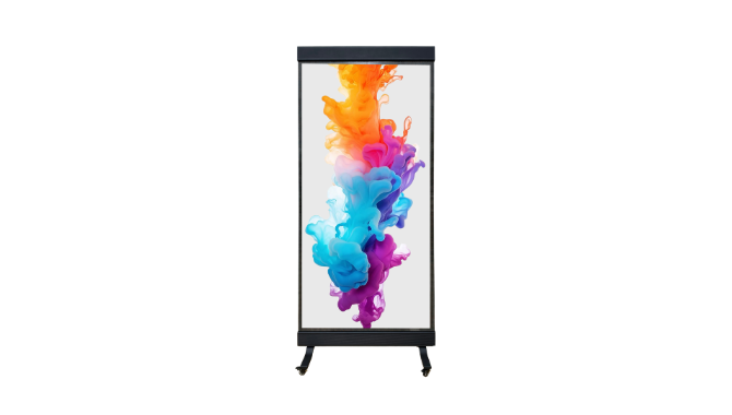 A compact and ultra-thin LED poster designed for indoor retail environments and commercial displays