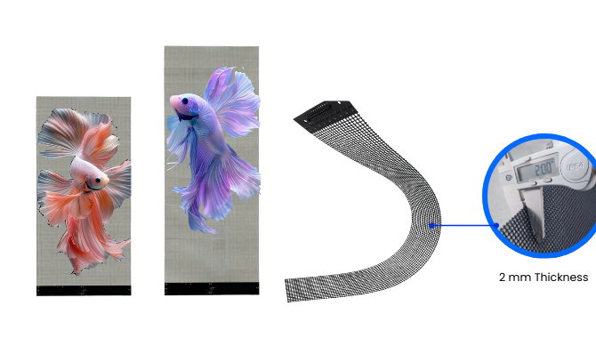 Modules can be cut, bent, and shaped to fit curved or irregular glass surfaces for versatile installation.